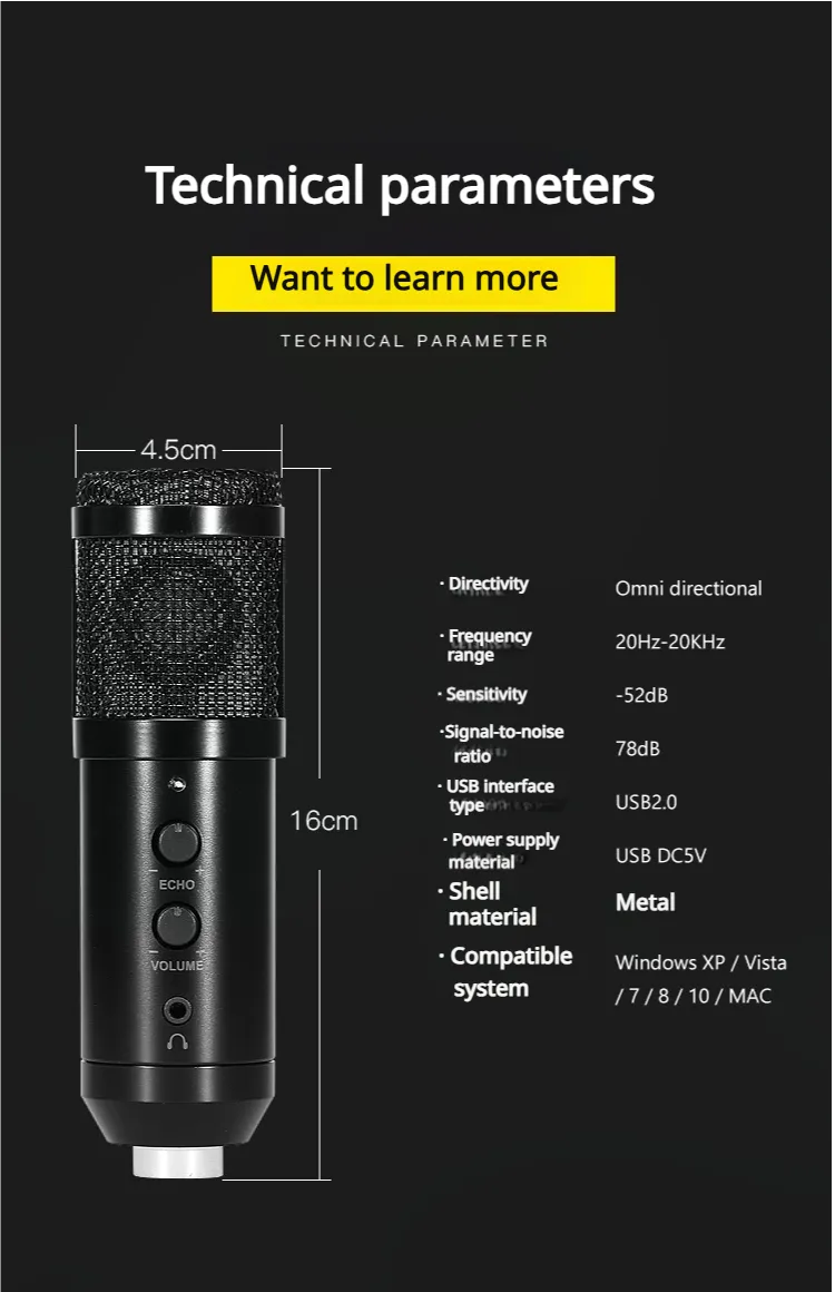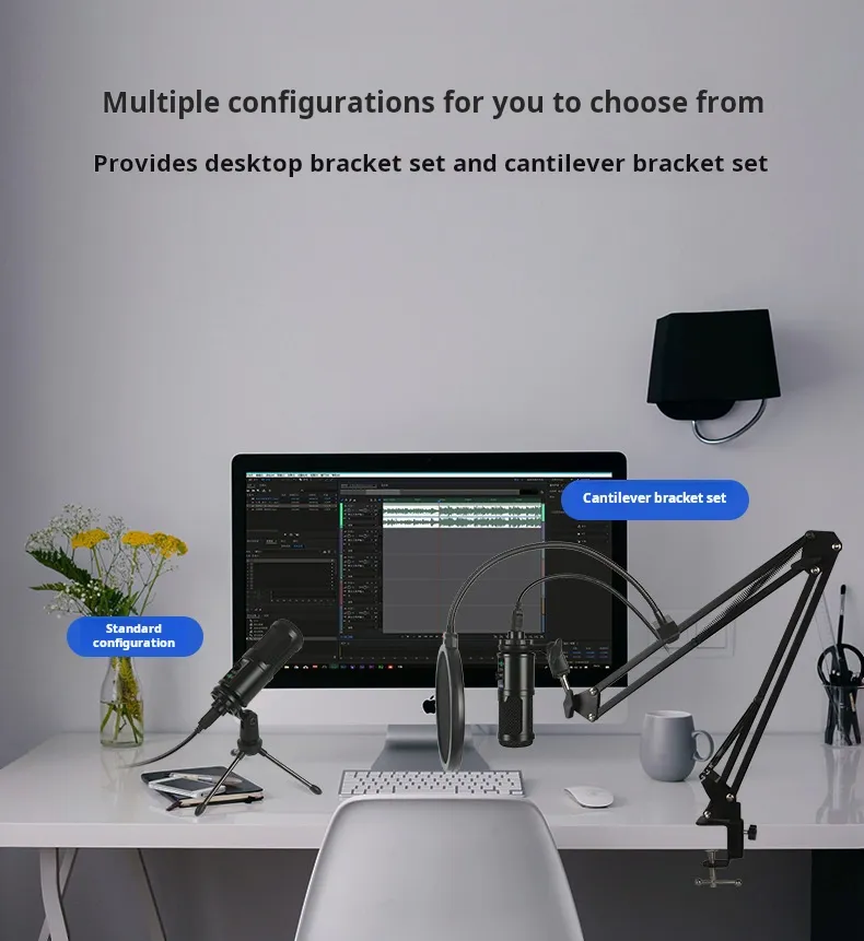 Desktop Computer Karaoke Condenser Microphone with Live Streaming Stand, Integrated Wired USB Microphone for Phone Recording, Including Reverb Effect.