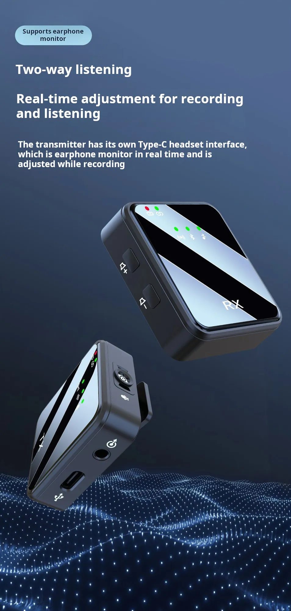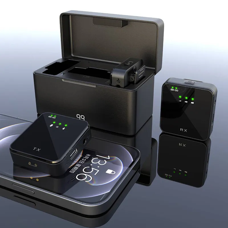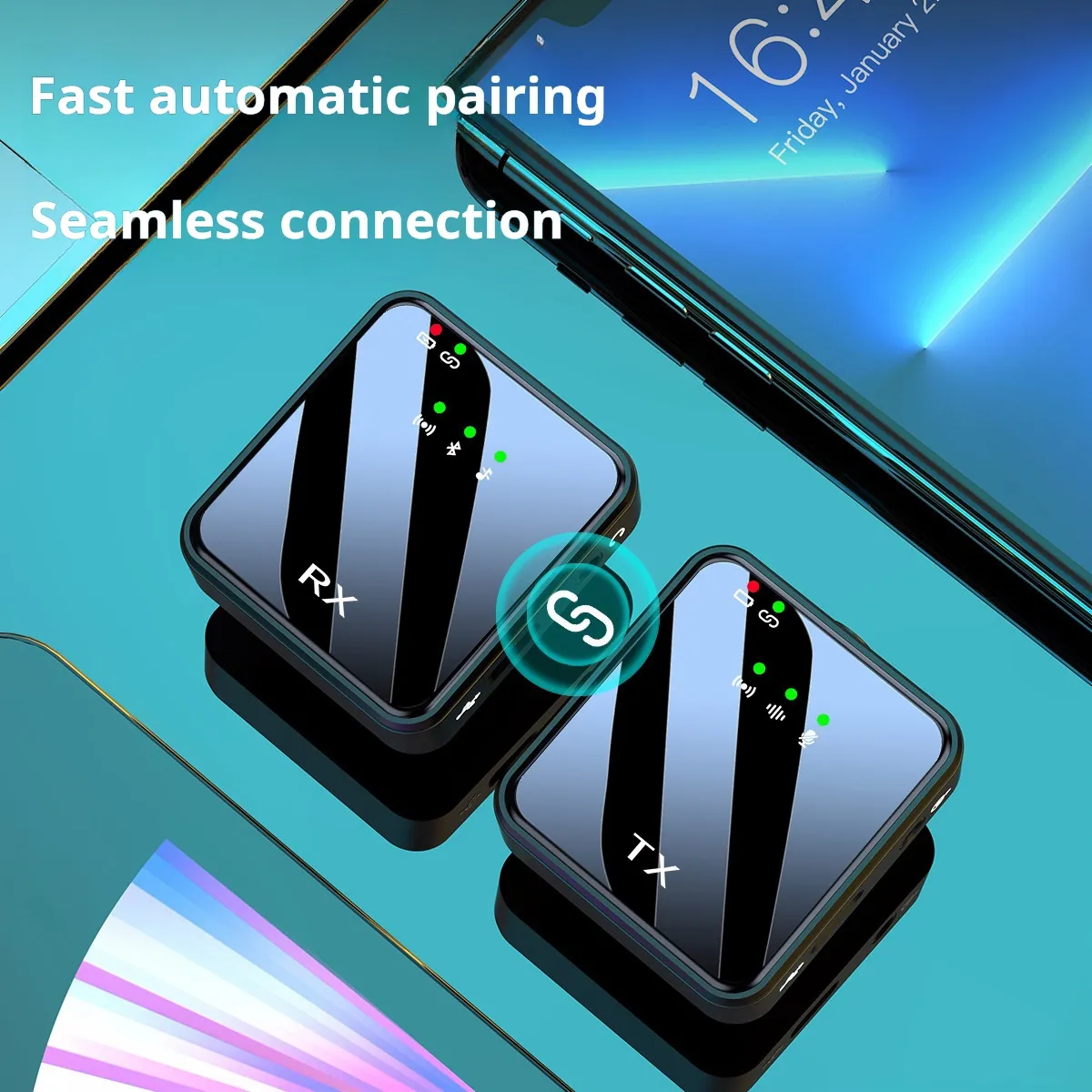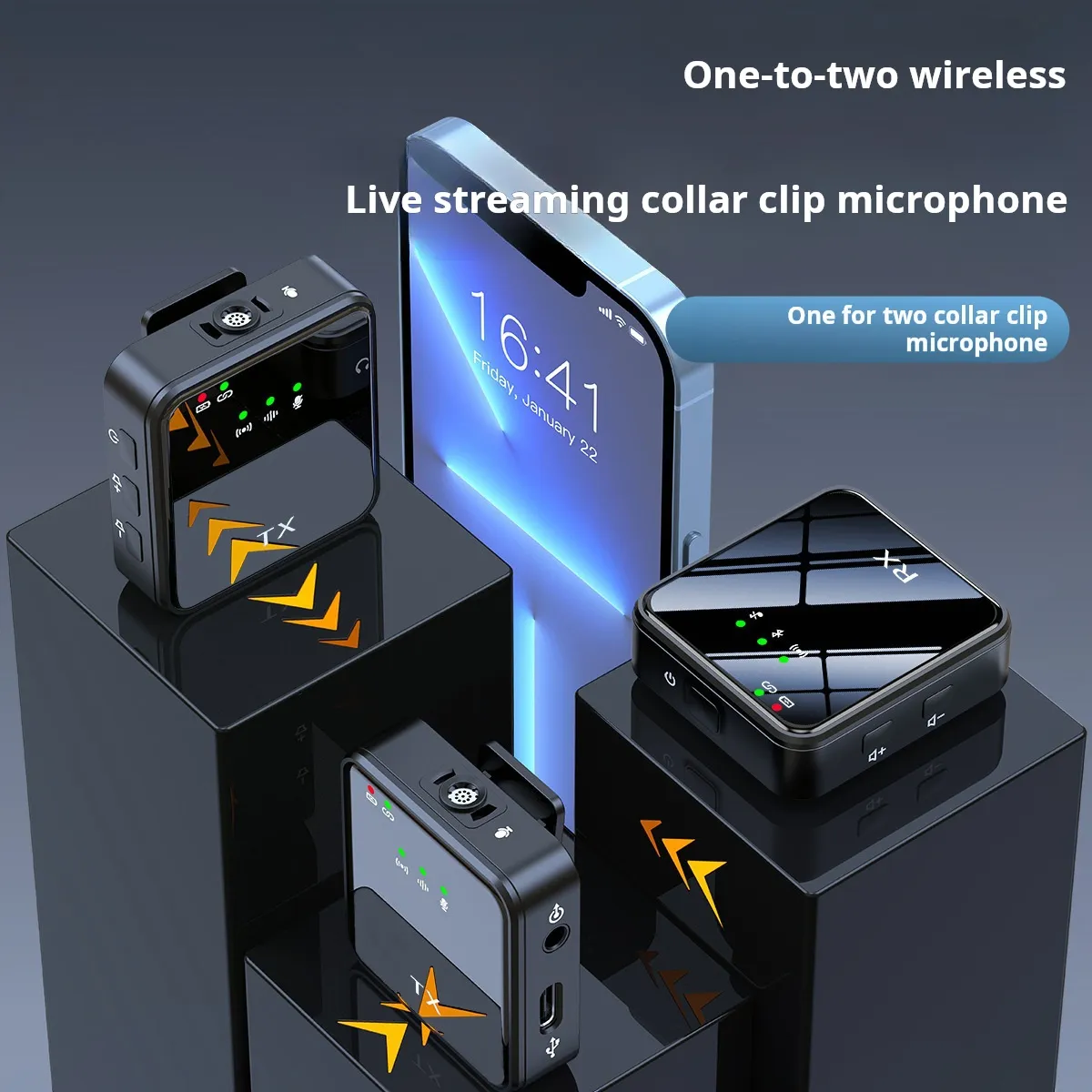 Wireless Microphone Set with Digital Display and Charging Case – 1-to-2 System for Mobile Phone Live Streaming, Bluetooth Audio Reception, and Wireless Lavalier Microphone.
